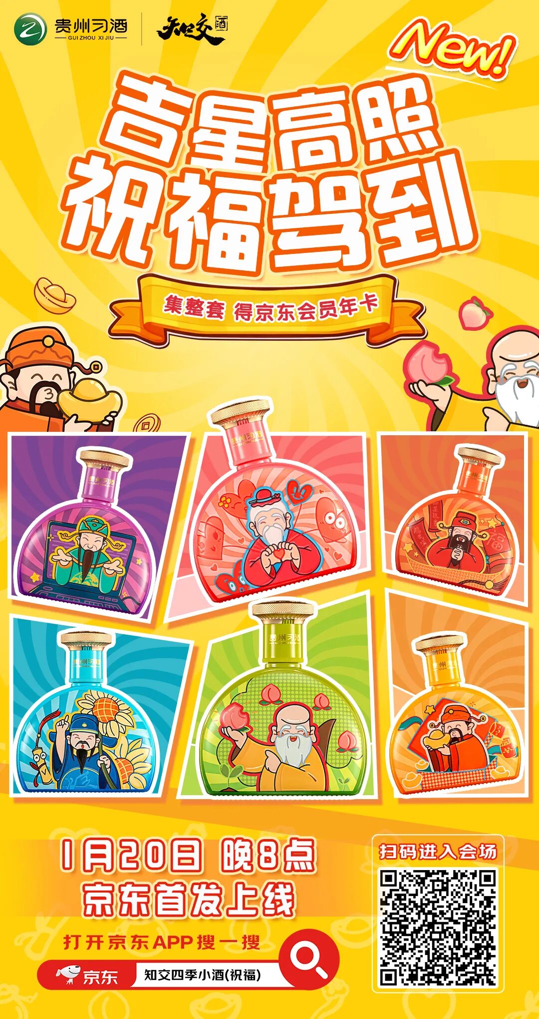 马年将至,知交四季小酒(祝福)也即将上市。这款小酒包含6种款式,以“福、禄、寿、喜、财、文”六位吉星形象塑造。以吉为核,将“四季流转 福禄相伴”祝福融入酒中,适配“轻量祝福”场景。