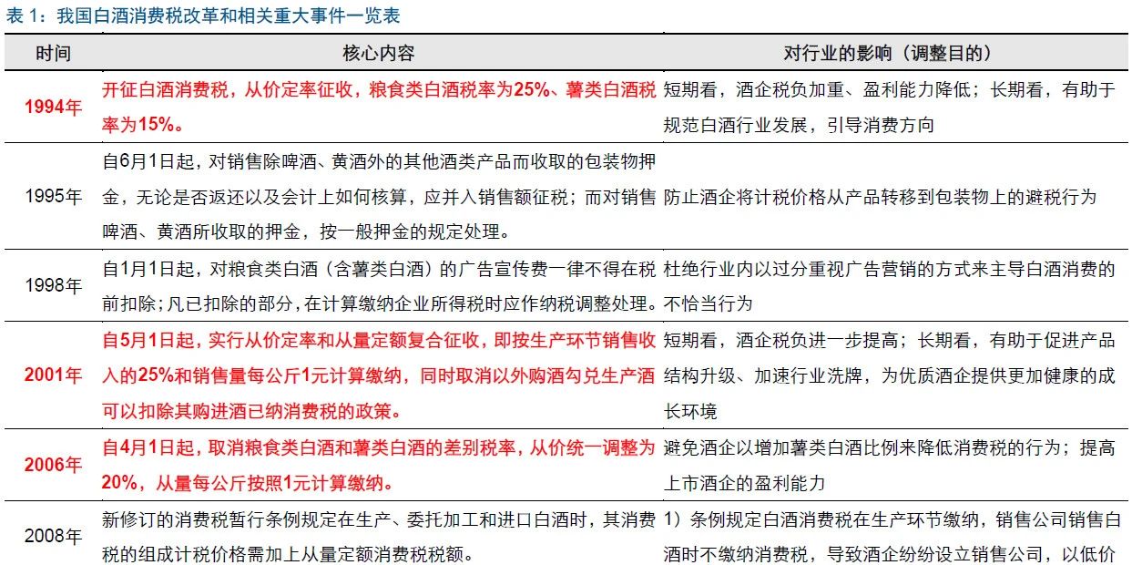 文 | 云酒团队(ID:YJTT2016) 5毛钱能干什么? 在很多人眼里,5毛钱可能微不足道,但它却足以影响一个产业的发展。 “公司效益急剧下降,下半年实现利润仅为上半年1/3”,2002年,尚未更名的水井坊全兴股份,对三季度净利润出现大幅下滑进行了阐释。 彼时,全兴股份在公告中表示,“国家酒类消费税政策进行了重大调整,造成全行业产销总量和经济效益的下滑”。这里所提的“国家酒类消费税政策”,正是从2001年5月1日起实施的酒类产品消费税政策调整,核心即对粮食白酒、薯类白酒按每斤(500克)0.5元从量征收一道消费税。 这是一个历史性的拐点,此后二十年里,从量税对白酒行业的影响持续深化、发酵,乃至今天的白酒品牌竞争格局和趋势方向,仍与这“五毛钱”有着千丝万缕的连续。 ❶ 2001年的白酒 与今天的白酒热度迥然不同,2001年,白酒行业是在低迷艰难中迈进新世纪的。 在国家宏观调控和初涉市场经济的不适之下,加之消费者消费习惯变化,白酒行业自1996年即陷入市场萎缩的泥潭中,整个行业的发展速度明显下降,白酒产量占全行业的比重也由1995年的30.5%,下降到1999年的17.7%。 市场激烈竞争之下,行业效益更是持续下降。 据统计,1999年全国白酒市场平均价格下降了10%以上,企业的营销费用却不断上升,行业亏损面达到30%左右,70%企业处于微利状态,只有1%维持高利润。即便是“优中选优”的白酒上市公司,也过的并不如意。 行业承压的同时,宏观经济也正面临剧烈调整。 1994年起,我国推行了新一轮税制改革,而随着国内、国外经济发展发生显著变化,对税制提出了新的要求,要求调整税种、完善税制结构,以优化资源配置,促进经济良性发展。 ▼1995年部分白酒企业利税总额统计(图片来源:网络) 2001年,国家有关部门即提出,要落实完善税制各种措施,其中既包括将增值税从生产型改为消费型,又包括调整消费税和营业税政策。其中针对烟、酒等特定产品,税改的目标即是建立以最终消费者为对象的消费税。 国家“十五”计划纲要中也表明,要继续深化财税改革,强化税收征管,加快税费改革,健全税制,强化税收对收入分配的调节功能,坚持不懈地打击偷税、骗税等违法犯罪活动。 5毛钱白酒消费税从量计征,正是在这样行业与宏观经济背景下出台的。 ▲财税[2001]84号文(部分) 2001年4月,“国家将对研究消费税进行调整”的消息被中央电视台披露。不久之后,财政部、国家税务总局联合发布了财税[2001]84号文,明确自2001年5月1日起,对白酒进行从价和从量相结合的复合计税方法,在国家从价征收白酒消费税的基础上,再对每斤白酒按0.5元从量加征一道消费税,同时取消以外购酒可以抵扣增值税的政策。 这一白酒税收调整,契合了中国加入WTO后税收政策与国外接轨的趋势,同时可以通过税收杠杆的调节,使中国白酒企业逐步走上规模化、集团化发展的道路,并在增税、产业调控方面产生积极意义。 但反映在不同的白酒企业身上,这看似微不足道的5毛钱,却改变了很多企业的发展和命运。 ▼白酒消费税征收过程示意图(请旋转手机查看大图,图片来源:长江证券) ❷ 争议 “5毛钱从量消费税”自发布之后,在全行业迅速引发广泛讨论。政策出台不久,包括中国酿酒工业协会(现中国酒业协会)、中国食品工业协会等行业协会,也第一时间组织召开调研会并向有关部门反馈意见。 争议之声在白酒行业内大量出现。 当时的有名酒企业高管在一次研讨会中坦言,“如果全国所有的白酒厂家都在增税中‘死光了’,我们最多也就比在座的同行多活几秒钟”。在其随后发布的公告中提及,2001年5至12月,预计将因此次税费改革,多缴从量计算部分的税款6000-8000万元,公司利润随之减少。 时任西凤酒股份有限公司总经理刘敏曾表示,国家想通过这一种手段来加强征管,解决单纯从价计征中存在的漏洞,同时真正的目的还是以通过增加生产成本,降低企业利润率来迫使企业加强管理、提高市场竞争力、规范市场秩序和加快行业的淘汰速度。 时任河南宋河粮液集团郑州营销公司总经理的刘明志也认为,新酒税政策对倚重中低档酒销售的宋河集团影响依然甚大,但从长远看,新政策为白酒企业搭建了一个公平竞争的平台,虽然执行初期使负担加重、竞争残酷,但绝对利大于弊,值得欢迎和贯彻。 ▲2001-2002部分白酒上市公司实际消费税率(数据来源:公司年报、兴业证券经济与金融研究院) 直到白酒从量计征的第五个年头上,争议声仍在不断出现。《酿酒科技》2005年刊发的《5毛钱的忧患》一文,用“悬崖边上的5毛钱”描述这一税收政策,认为“从量税”给企业经营带来巨大压力,无论品牌、资金实力,还是企业综合抗风险能力,都产生了巨大的影响,认为这是“一种造成产业结构突出矛盾、危及老百姓消费安全、阻碍国家税收合理性增长、甚至一定程度上影响社会稳定的‘人为之患’”。 ❸ 苦果 从当年数据看,从量计征对白酒的冲击之强烈可谓一场“地震”。 2001年,全国白酒产量420.19万千升,同比下降11.75%;全国24个省市自治区同比下降,下降幅度超过20%以上的达到8个省;占全国总产量80%的10个产酒大省中有8个下降。全国白酒行业重点企业亏损面也从2000年的23.7%,大幅增长到超过50%。 全年,白酒行业销售收入499.91亿元,同比下降2.77%;利润总额40.39亿元,同比下降7.13%;亏损省达到8个,税金总额88.2亿元,同比增长