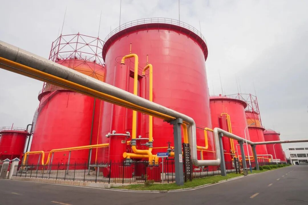 ▎迎驾厂区里的红色的巨型大罐,体积高达9700立方,每天可以通过厌氧发酵处理3000吨废液、废水,产生的沼气会顺着黄色的管道传输。沼气可以用来烧锅炉,污水通过厌氧、耗氧、降解排放到工业污水厂。摄影@好酒地理局