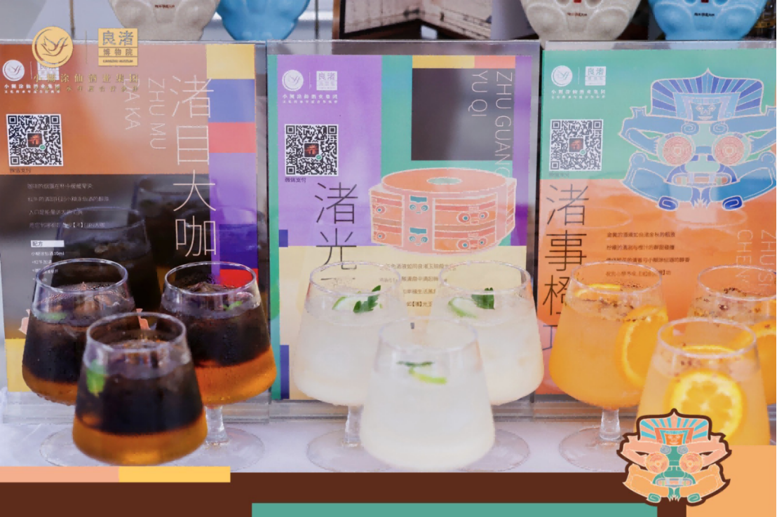 为了贴近年轻群体需求,探索传统酒文化的年轻化表达,小糊涂仙还在现场设置调酒体验区,打造别具一格的幸福体验。“渚事橙功”“渚目大咖”“渚光玉气”三款专属特调,从命名、酒液形态到口感层次,都将良渚元素与美好寓意紧密绑定:“渚事橙功”将心想事成的祝福藏进杯盏;“渚目大咖”不仅贴合年轻人快节奏下的能量需求,“渚目”更有“走到哪都备受瞩目”的期待;“渚光玉气”以白玉色酒液呼应良渚玉琮的光洁质感,气泡的升腾则如幸福生活蒸蒸日上。