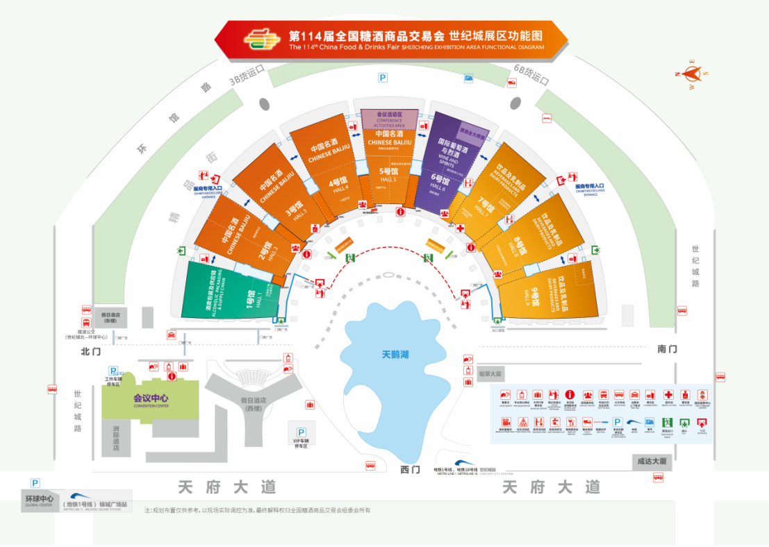 本届糖酒会两大展馆功能清晰、定位互补,实现对食品酒饮全产业链的精准覆盖:世纪城新国际会展中心聚焦酒类与饮品板块,打造“品牌竞技场”,设置中国名酒、国际葡萄酒及烈酒、饮品及乳制品、酒类包装及供应链四大展区,是酒类品牌展示实力、对接经销商的核心阵地。其中,2-5号馆(中国名酒展区)更是白酒行业的“C位舞台”,汇集头部酒企与潜力品牌。