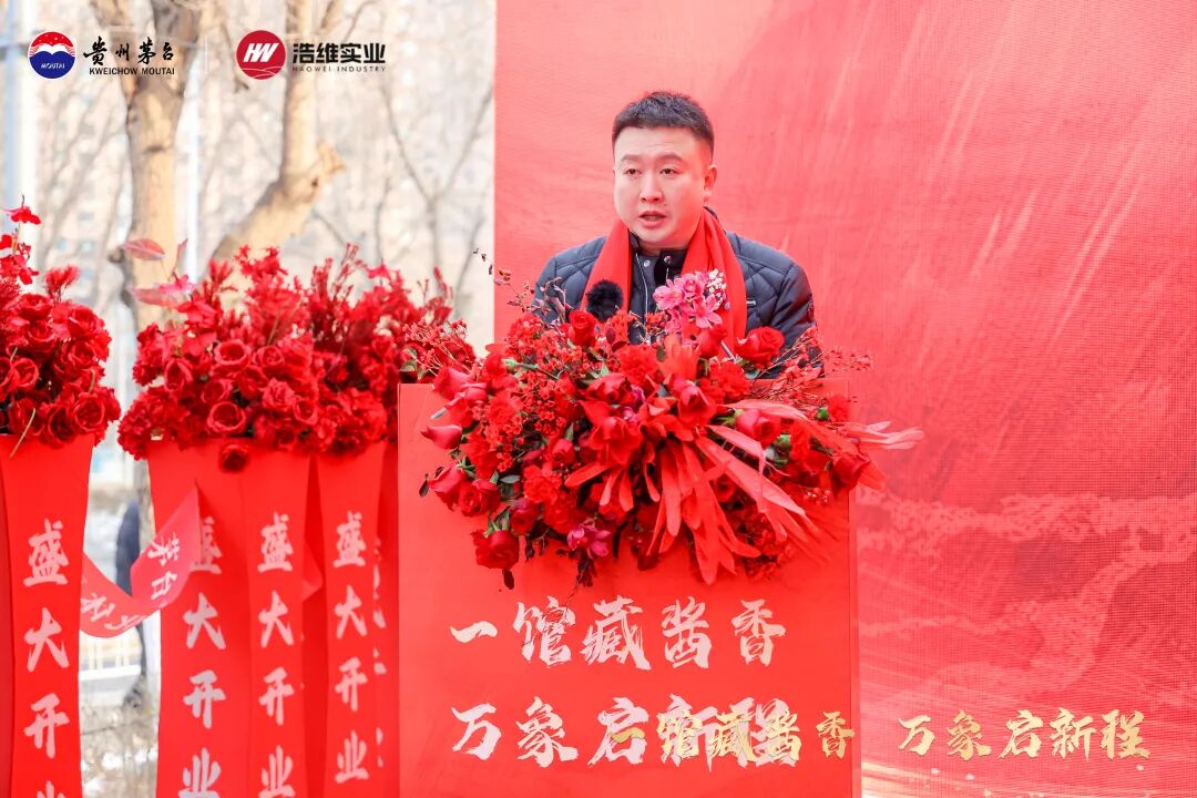 上午9点39分,开业典礼在热烈喜庆的氛围中正式启幕。贵州茅台辽宁省区经理刘洋登台致辞,高度肯定辽宁津享逸集团深厚的行业积淀与运营实力,寄语茅台文化在此沃土之上落地生根、馥郁绽放。