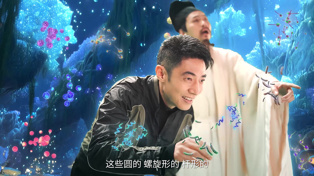 随后,镜头潜入一个绚丽奇幻的“微生物宇宙”。酵母菌、细菌、霉菌以各种生动的形态舞动,将看不见的微观世界可视化。