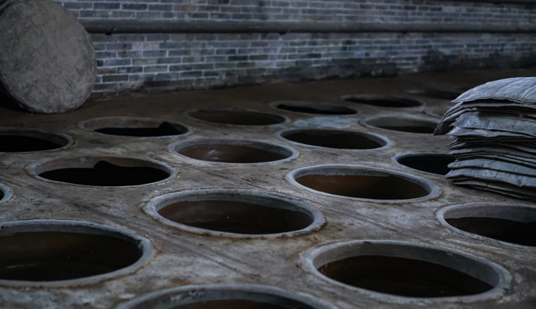 经过“饮缸”,新鲜的土和新鲜的麦糠,会滋生新的微生物。微生物的迭代,是汾酒“干净”的原因之一。