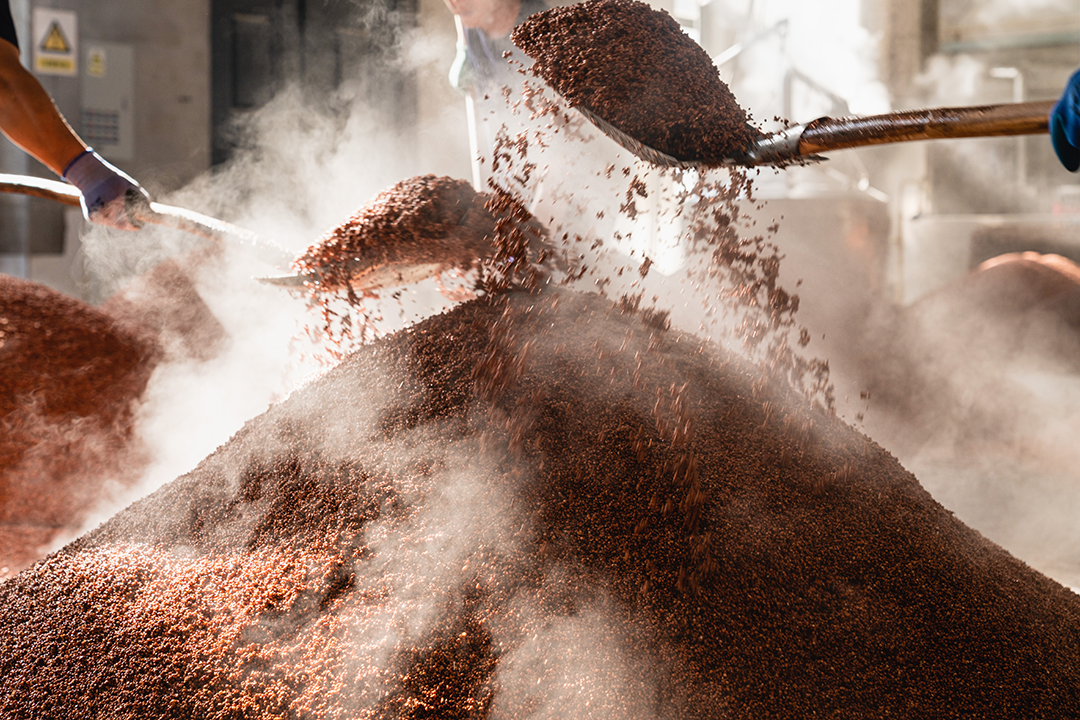 经过炎夏考验的酒醅,出池后需要掺入稻壳和新粮,并用铁锹充分混合均匀——这个环节被称作“打老堆”,是酿造浓香型白酒的传统操作手法。接下来就是上甑环节,当酒液汩汩流出,香气几乎使人沉醉,你便知道,酿酒人不曾辜负这长达数月的等待。
