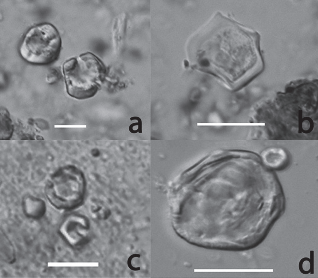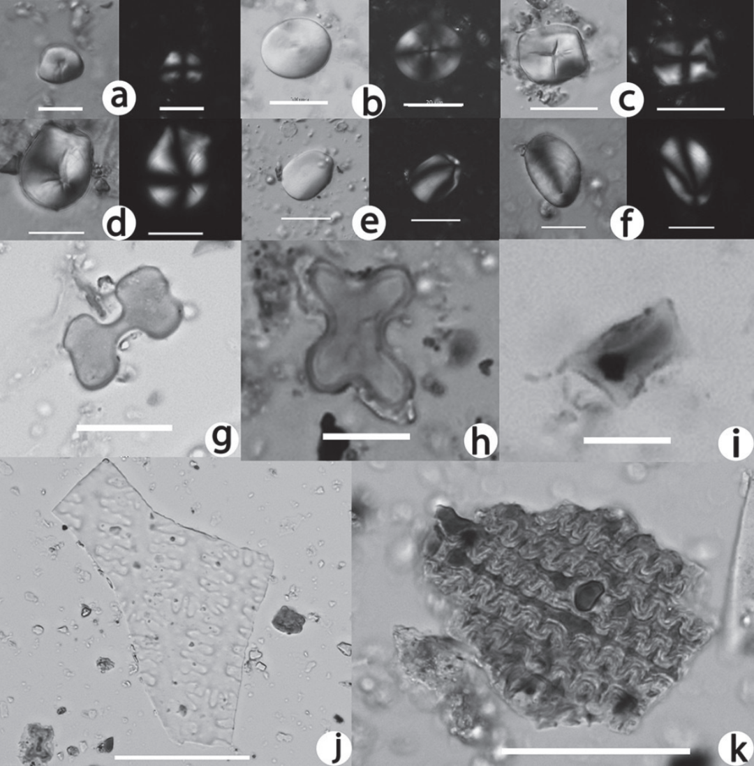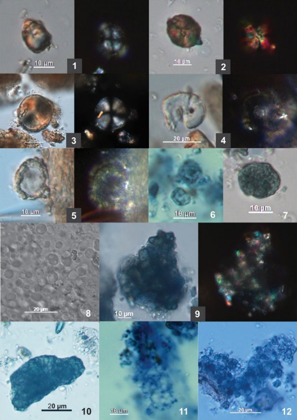 ▎米家崖陶器残留物中的淀粉粒和植硅体(DIC 和偏光视野)