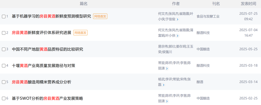[2]何文杰,张凤杰,崔路露,等.房县黄酒新鲜度评价体系研究进展[J/OL].酿酒科技,1-9[2025-11-13].