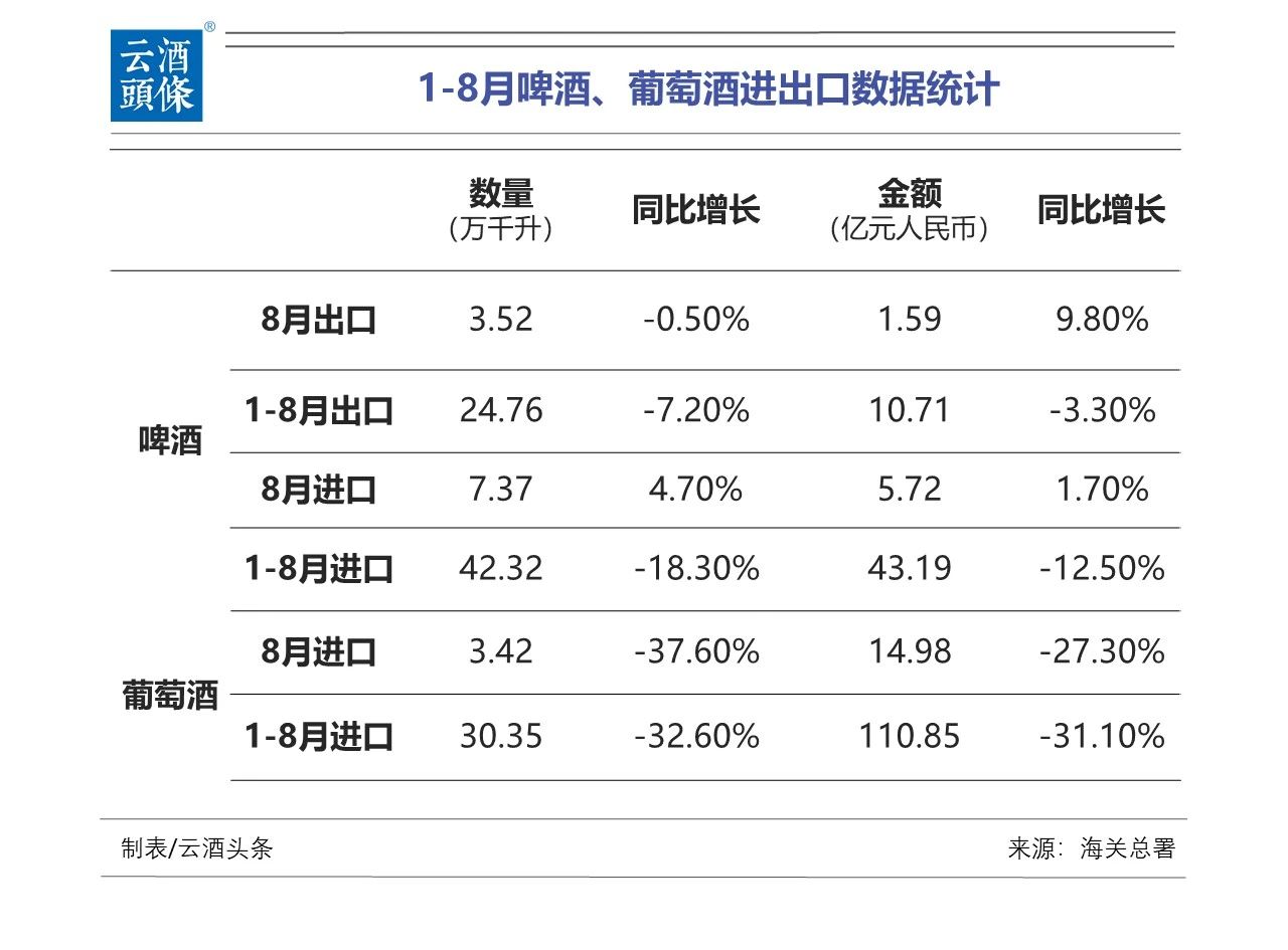 文 | 云酒团队(ID:YJTT2016) 1-8月酒类进出口数据出炉 9月23日,海关总署发布2020年1-8月进出口主要商品量值统计数据,其中葡萄酒、啤酒进出口情况如下表所示。 1-8月贵州规上白酒产业增加值增长4.6% 9月24日,贵州省召开白酒包装配套和白酒企业生产运行调度专题会。会议透露,今年1-8月,贵州省规模以上白酒产业增加值同比增长4.6%,持续为贵州工业经济稳定发展作出重要支撑。同时强调各重点白酒企业要充分利用四季度销售黄金期,确保全年目标任务全面完成。 飞天茅台直销渠道节前已平价投放33.5万瓶 据茅台时空9月25日报道,为维护茅台酒市场秩序,平抑价格,9月25日-28日,又有4家茅台直销渠道商宣布投放合计9万瓶1499元/瓶的飞天茅台,分别是河南大张(2万瓶)、厦门夏商(2万瓶)、麦德龙(3万瓶)和新华都(2万瓶)。结合此前天猫超市(3万瓶)、物美(8.5万瓶)、贵州华联(2万瓶)、华润万家(3万瓶)、重百超市(2万瓶)、河南酒便利(3万瓶)、酒仙网(3万瓶),目前已有11家茅台直销渠道商在中秋国庆前投放33.5万瓶平价飞天茅台。 据悉,此次茅台直销渠道放量,活动最迟时间截至在9月28日前,部分渠道已完成销售。双节将至,茅台多个直销渠道商都在不断放量,满足消费者购酒需求,并采取限购、大数据分析等方式精准投放。 泸州老窖:国窖河南会战进行中,60版特曲暂不线上销售 9月25日,泸州老窖在2020年四川上市公司投资者网上集体接待日活动中表示,受疫情影响,公司难以预计准确的量化经营目标,公司将保持对疫情发展的高度关注,积极应对经营环境的变化,继续维持良好发展势头,确保行业排位不下降,力争缩小与行业前列企业的差距。 产品方面,泸州老窖方面表示,国窖1573河南会战正在按规划开展中,这是公司进行市场拓展的标准化模式之一;60版特曲坚持怀旧、简约定位,主打团购模式,目前暂无线上销售计划,将以川渝区域为第一战略市场,志在打造500元价格带的优势团购品牌;头曲产品目前对旺季的备货也已完成。此外,公司技改项目拟于2020年底竣工,竣工投产后后将增加公司10万吨优质固态产能,目前试生产情况良好。 同日,泸州老窖特曲酒类销售股份有限公司冀北片区发布通知称,即日起暂停接收泸州老窖特曲产品订单,2020年11月1日恢复接收。 青花郎事业部全线停货 9月25日,四川古蔺郎酒销售有限公司下发通知,青花郎事业部全部产品暂停发货。通知显示,公司将根据供需、市场秩序等因素,确定第四季度青花郎事业部各品项发货指标,分阶段、分区域差异化滚动下达到办事处(联络处)。各办事处根据指标编制经销商发货申请,经事业部、公司审批后,方可发货。 酒博会10月29日在泸州开展 9月25日,中国酒业协会官方微信发布消息称,受新冠疫情的影响,由中国酒业协会主办的第十五届中国国际酒业博览会,现延期至2020年10月29日-11月2日在泸州国际会展中心举办,共设中国白酒名酒展区等11大展区。其中2020年10月30日将举办开幕式,展会期间还将举办中国国际酒业发展论坛等15项活动。 多家外国酒企发布2020半年度业绩 公开资料显示,多家国外酒企已于近期发布2020年半年度业绩。其中报告期内, 喜力控股实现营收92.4亿欧元,同比下降16%,盈利8.27亿欧元,同比下降53%; 三得利控股实现营收(含消费税)11053亿日元,同比下降10.2%;净利452亿日元; 朝日集团控股实现8743亿日元,同比下降11.1%,净利302亿日元; 麒麟控股实现营收8725亿日元,同比下降6.2%,净利333亿日元; 摩森康胜实现净销售额25亿美元,上年同期29.5亿美元,净利润1.95亿美元,上年同期3.29亿美元; 星座品牌公司实现净销售额19.63亿美元,同比下降6%,净亏损1.78亿美元。 ST通葡:公司正尽快解决担保问题 9月25日,ST通葡在投资者互动平台交流中表示,公司将进一步加强线上线下品牌推广,提升通化葡萄酒品牌宣传和影响力提高消费者体验度及满意度。同时,公司实际控制人目前正在积极采取措施筹措资金,尽快解决担保问题。 美国山火致使部分著名葡萄酒产区被污染 福克斯商业新闻9月24日报道,美国西海岸山火产生的烟雾污染了美国一些著名的葡萄酒产区的葡萄,使其呈现出一种灰蒙蒙的外表,这可能给2020年的葡萄酒产业带来灾难。据悉,在今年的收获季节,一些葡萄酒厂只选择购买通过烟雾污染测试的葡萄。但实验室的条件过于苛刻,无法及时分析出新的测试报告。位于加州圣赫勒拿州纳帕谷镇的实验室表示,现在收到的葡萄样本的检测结果要到11月才能出来。 法国马赛将关闭餐馆与酒吧 中新社巴黎9月24日消息,受新冠疫情影响,法国被划入疫情“最强警报区”的重要城市马赛,必须从9月26日起关闭餐馆和酒吧。法国总理卡斯泰表示,马赛疫情严重,采取防疫新措施是在“与时间赛跑”,餐馆和酒吧等场所相对容易被病毒感染,因此有必要关闭这些场所。