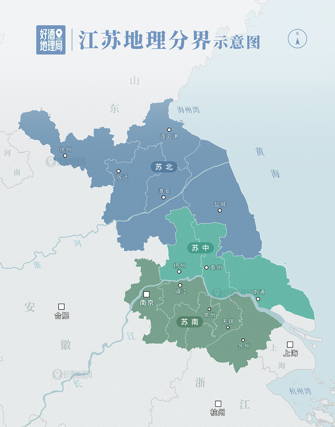 关于江苏地域分区最简单的说法,是以长江为界,将江苏划为江南与江北。这个提法是有历史依据的,江苏地区在元代之前,长江两岸分属不同行政区,清代建省后,也曾多次以长江为界,南北分治,直到民国才不再分开治理。