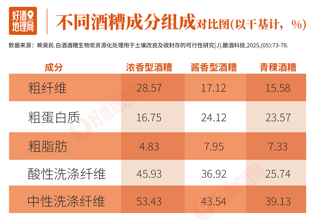但这种现象从未真正发生。因为酒糟作为粮食的“余生”,仍然富含大量营养成分,如纤维素、蛋白质、淀粉、脂类等,具有很高的利用价值和资源化潜力——酒企们自会将它妥善处理。