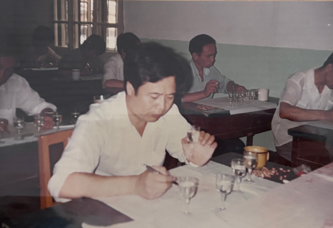 每日晨起洗漱后,他必花费一小时,逐个细致品鉴这些酒样。在那个许多检测仪器尚未普及的七十年代,品评白酒极大程度上依赖品酒师的感官。张建有在品味名酒时,用心记忆其中各种风味物质的构成;上班后,则依据记忆,反复尝试勾调出所需的度数与风味。