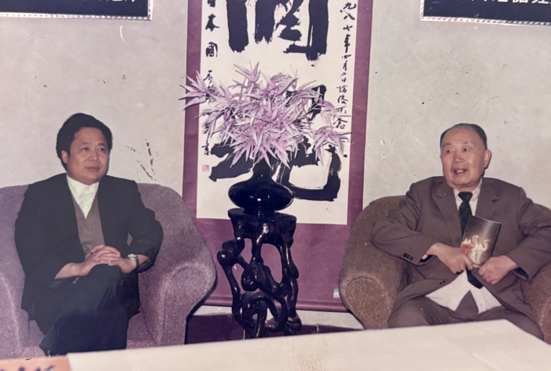 ▎时任杜康酒厂厂长的张建有(左)向中国人民政治协商会议第六届、七届全国委员会副主席王恩茂(右)汇报工作 图源@张建有家人