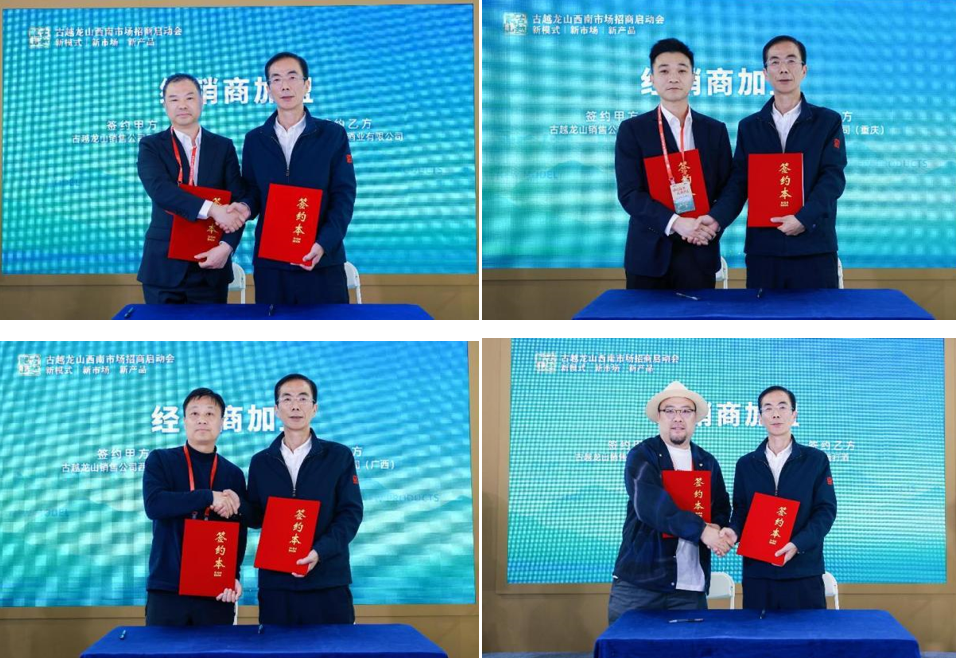 朱国安与越来盛酒业有限公司总经理潘晓、壶中仙酒贸有限公司总经理梁竹军、熊猫打酒创始人程建军、成都三杯两盏酒业有限公司总经理梁金雷等四家经销商伙伴签署加盟协议,标志着西南市场渠道布局迈出坚实一步。
