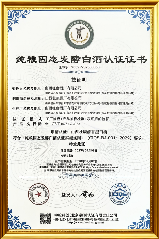 目前,杜康清香系列产品已获得纯粮固态发酵白酒认证,恪守纯粮固态发酵工艺,为品质稳定提供权威保障。