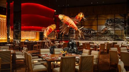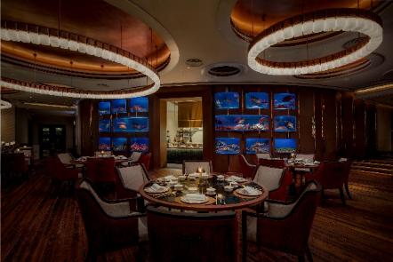 餐厅内饰由九万颗水晶打造标志性的富贵飞龙,与精致粤菜相互辉映,吸引各地美食爱好者前来朝圣。