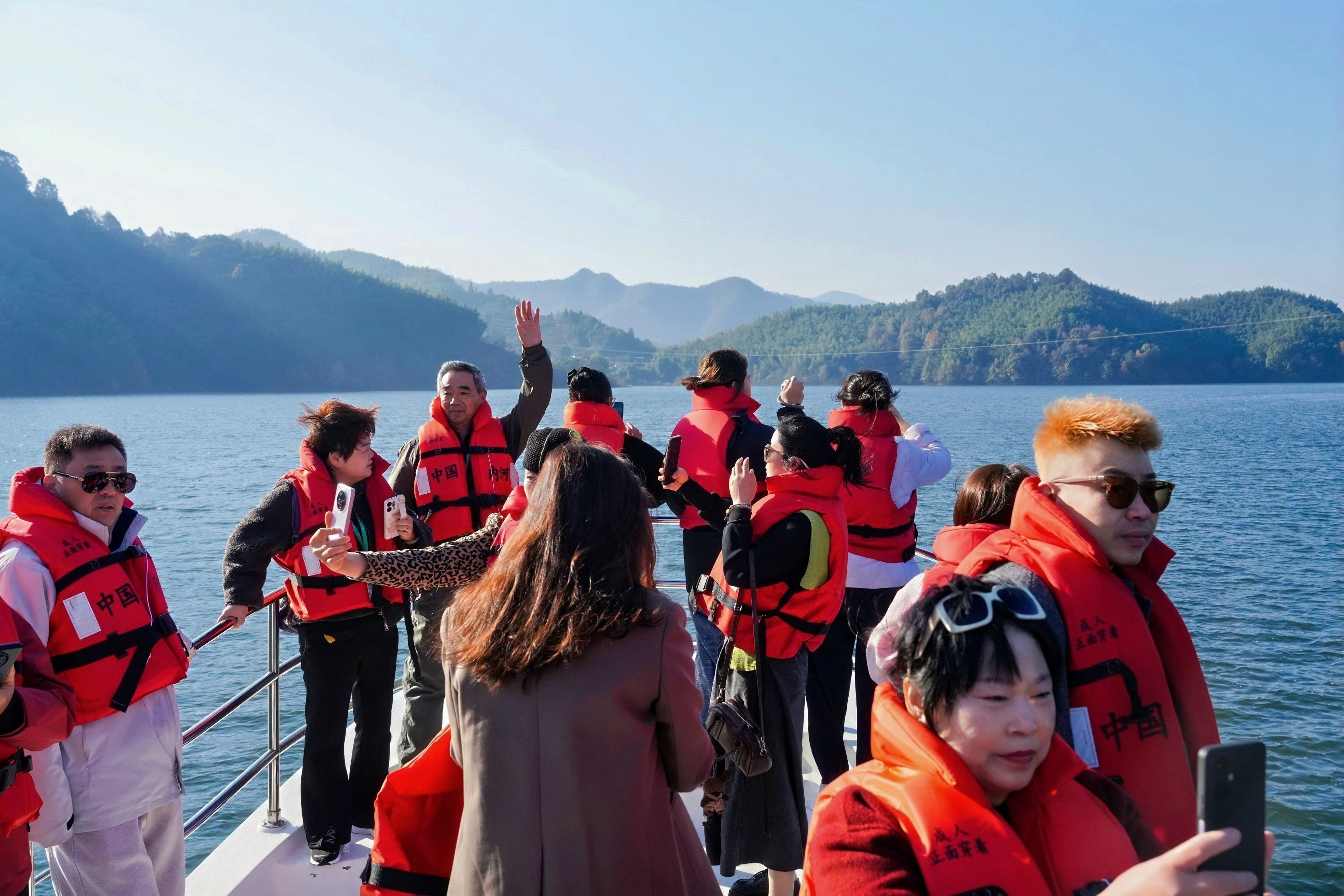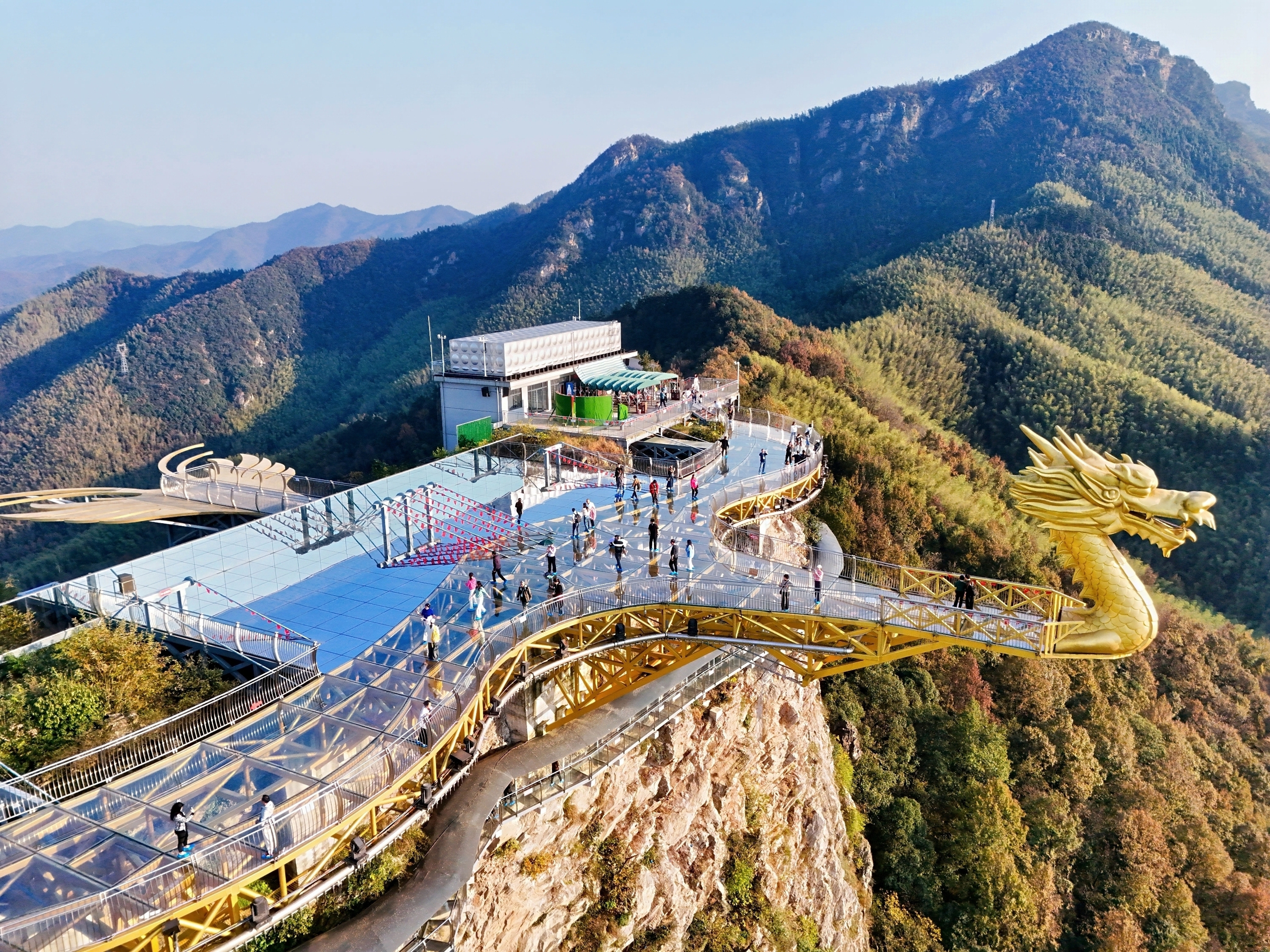 随后的六万情峡考察更是亮点纷呈:代表们乘坐魔毯,单程20分钟左右便直达六万情峡的龙头观景台。站在玻璃平台上,76%的森林覆盖率造就的天然氧吧中,每一口呼吸都满是清新;大型实景演出《大别山传奇》以真实历史为背景改编而成,重现当年的革命岁月,让不少代表热泪盈眶;还有峡谷游船的惬意与竹海滑道滑的刺激,让大家沉浸式体验了景区的多元业态。“秋季的六万情峡层林尽染,演出和风景都特别好,一定要来现场才能感受到这份(演出的)震撼。”来自江西的旅行商代表在考察中由衷赞叹。15日夜晚,今年全新落成的迎驾大剧院迎来“满堂彩”,一出经典的黄梅戏让代表们领略了安徽传统戏曲文化的魅力。待演出结束,迎驾春风街的绚烂烟花准时升空,将气氛推向高潮。