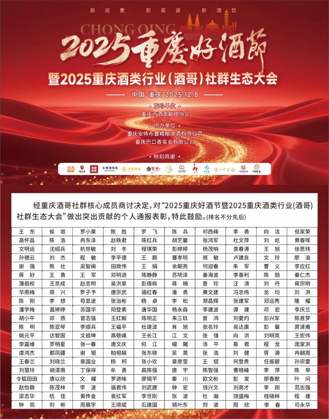 2025年12月8日,既是一年一度重庆卖酒人聚首的好日子,又是重庆酒哥社群八周年年会举办的大喜之日
