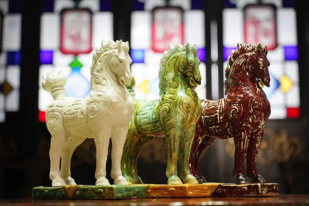 在瓶型设计上,马鬃马尾化形为焰,暗喻丙午火年事业生活“红红火火”;马身以青铜纹甲篆刻“太吉”二字,承载千年祥瑞;底座雕刻“佛山”印章既标明产地,又暗藏着“佛山马上火”的巧思和祈愿;6款经典釉色中,“石湾红”红红火火,“唐三彩”致敬经典,每瓶都是可藏可赏的精品。