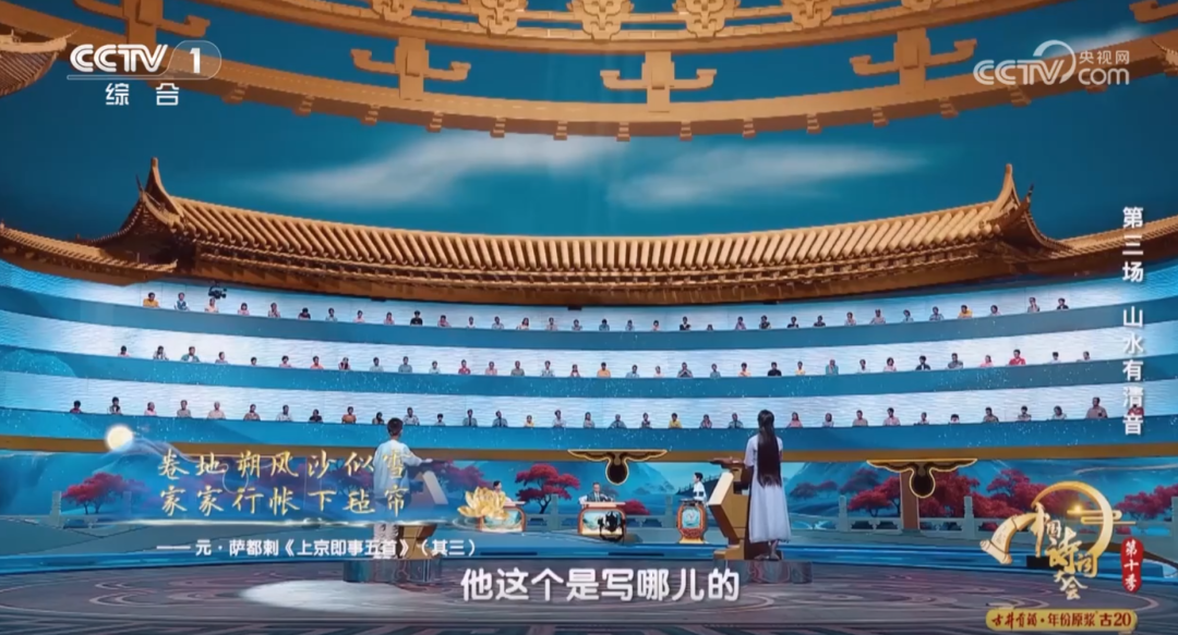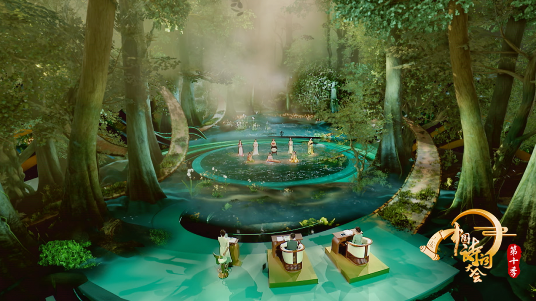 在本次节目中,无论是“大浪淘沙”环节以四大雅事为线索,巧妙设置的诗词关卡;还是“情景共答”环节中,复原的五代十国时南唐周文矩的名画《合乐图》中的宫廷乐班;还是“外景环节”中,贵州铜仁大峡谷万丈飞瀑下的吟诵,观众都能直观感受传统文化之美。