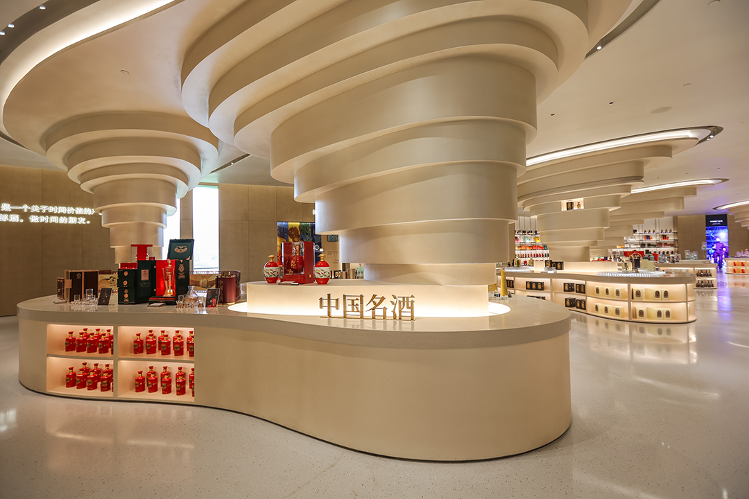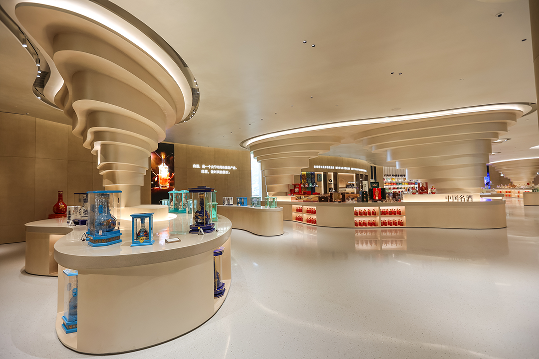 因此,“左岸·简”的空间设计语言极为纯粹——干净的线条、克制的色彩、大量的留白。这是一种高级的自信,当品牌内核足够强大,产品本身足够极致时,空间便退居为“配角”,为的是衬托每一瓶酒的独特气质,让到访者寻得内心的宁静,专注于郎酒的“极致品味”。