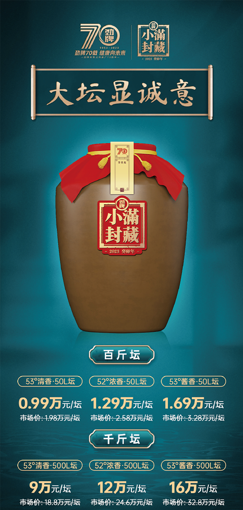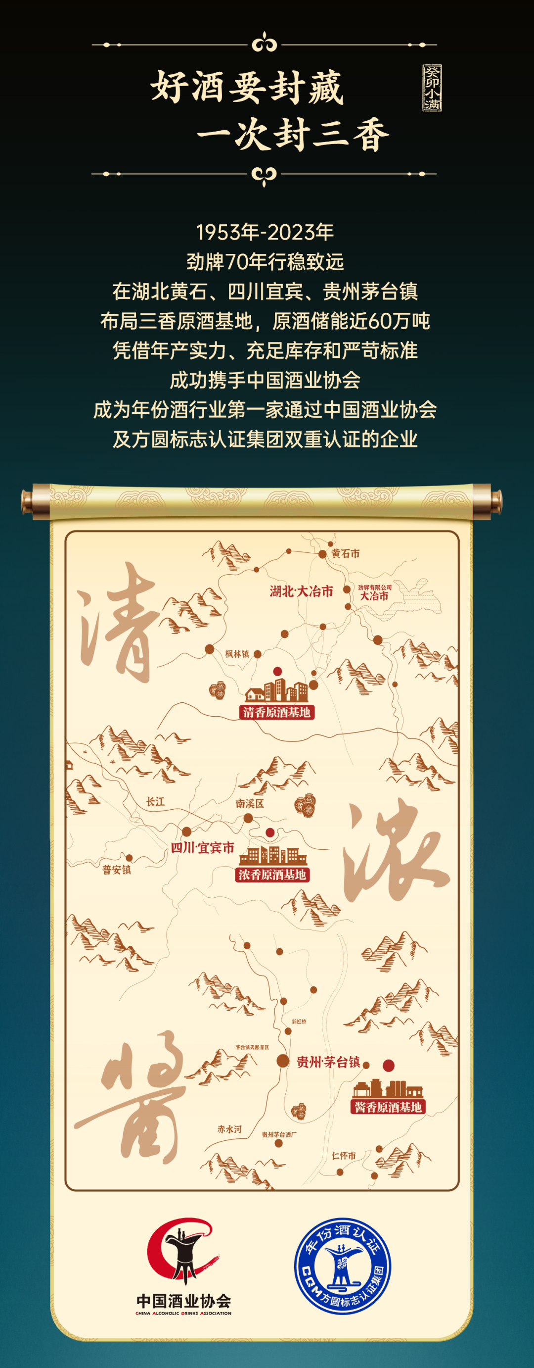 小满,草长莺飞,生意盎然。顺应天时封好酒,好酒封藏正当时。 5月21日,时至小满,劲牌公司将在湖北大冶举行“清香年代品牌发布暨小满封藏”活动。恰逢劲牌公司建厂70周年,这也将是企业战略层面、品牌塑造层面、产品营销层面的一次紧密联合。 本次活动中,劲牌公司也将再携真年份诚意之作,推出战略清香品牌“清香年代”。以劲牌70周年为契机,劲牌公司将如何打造一个具有劲牌特色的“封藏节”? ➊ 天赐佳酿 小满封藏 为什么要举办“小满封藏”活动? 劲牌的回答是:酒是时间的朋友,封藏赋予白酒生命和价值的第二次进化。封藏,不仅在于可以得到一坛美酒,更在于其中所表达的情感祝福,人生大事当封坛。 从1953至2023,劲牌公司经过70年的发展积淀,于湖北黄石、四川宜宾、贵州遵义布局清浓酱三香原酒生产基地,原酒储能近60万吨,藏酒实力雄厚。同时,劲牌是中国酒业协会&方圆认证机构双重认证年份酒的第一家企业,小满封藏是劲牌对“真年份”酒的具体践行。 为什么要在小满举办封藏活动? “四月中,小满者,物致于此小得盈满。”小满,取“小得盈满”之意,正所谓,小而不盈,满而不溢,富含古人哲学观,是一种不断进取的人生态度,也是生生不息的企业精神。 70年来,劲牌公司一直坚持“好而不同 追求极致”的产品理念,通过精益求精的产品品质为消费者创造健康生活。这与小满节气所彰显的不断进取的人生态度和生生不息的企业精神不谋而合。或许这正是劲牌公司选择小满封藏的寓意之所在。 ➋ 一次封三香 小满封藏的底气 据悉,在此次封藏活动上,劲牌公司将提供清、浓、酱三种优质原酒,由三大基地直供,均为百分百年份原酒,有百斤坛和千斤坛两种规格。且每一坛有唯一编号,产品价值逐年上涨,在满足不同类型消费偏好的同时,充分彰显了劲牌公司70年酿造实力和品质基因。丰富的原酒储能让劲牌成为行业首家“一次封三香”的企业。 清香原酒产自劲牌清香酒基地——酿造总厂枫林酒厂,酒体清香陈雅、坛陈香突出、入口绵柔、回甜爽净; 浓香原酒产自劲牌浓香酒基地——宜宾南溪酒业,酒体窖香浓郁、粮香舒适、入口绵柔醇和、甜净余长; 酱香原酒产自劲牌酱香酒基地——茅台镇国宝酒业,酒体酱香突出、陈香明显、醇和协调、回味长、空杯留香久。 按照真年份酒的认证标准:具备20年以上不间断酿造历史,基酒年生产能力3000千升以上,基酒(3年以上)贮存能力1000千升以上。 劲牌的各项标准均远超行业标准,并且,劲牌还按要求设立年份酒的感官标准和品鉴相关部门,聘请年份酒感官测定的资格人员,从原酒准备、提交申请、接受审核、坛签封存再到录入系统管理,最终由中国酒业协会和方圆认证集团的双重认证,备案存储年份酒信息通过第三方机构监督产品的“真年份”。 劲牌的年产实力、充足库存和严苛标准是对品质的坚守,岁月陈酿出真年份真滋味。而这,也是劲牌小满封藏强大的底气。 劲牌小满封藏,让懂酒爱酒的消费者有了更好的选择。 ➌ 酒库的奥秘与劲牌的诚意 劲牌在湖北大冶城西北区建设了健康产业园,园区的24栋陶坛酒库每栋可存原酒一万吨,有“万吨陶缸库”之称。这里,特别为美酒爱好者提供了专属藏酒阁,劲牌封藏酒就坛藏其中。 劲牌藏酒阁内恒温、恒湿、富氧,能更好的让酒体于时光流转中自然醇柔。这里的陶坛选用的是“非遗”技艺制成的隆昌陶坛,独特配方促进原酒陈雅,同时藏酒阁内有专人24小时守护,360°全方位监控,安全无忧。 ▲城西北未来规划图 “3+”特色服务指封藏酒以三香地标原酒为酒基,可依据客户需求,提供添加老酒、草本浆以及中药包服务; “5种”分装形式包括免费基础分装、坛藏分装、主题分装、品牌分装、个性分装,满足消费者个性化分装需求; “7项”增值权益则囊括了专属封藏、劲牌之旅、电子酒证、免费贮存、开坛仪式、财产保险、藏酒管家,全方位保障消费者权益。 ➍ “清香年代” 70年劲牌品质 风雨七十载,劲牌公司始终坚持以品质为核心,为广大消费者酿造一瓶健康好酒。 70年的清香酿造史,也让劲牌公司的酿酒技术、优质原粮有了深厚的历史沉淀。当前清香大势下,劲牌公司以70周年为契机,重磅推出战略清香型品牌——“清香年代”。 “清香年代”既承载着劲牌公司70年清香酿造历史底蕴,也是其致敬品质初心的诚意之作。 “天赋草本 陈雅清香”。清香年代继承劲牌健康基因,酒体融合草本因子,自然秉承健康属性,其中“真年份 陈雅香 草本浆”是年份酒的身体力行。“清香年代”品牌的发布标志劲牌后续将在清香型草本白酒端发力,顺应当下清香白酒品类快速升温的趋势,为消费者提供更加多元化和精细化的选择。 于传承中创新的“清香年代”在行业内首创“陈雅清香”。本次发布会上,清香年代年份酒、光瓶酒和瓶贮酒系列产品将重磅亮相,覆盖不同价格带和消费场景。同时,以劲牌70载为契机,还特别推出70周年纪念款、70周年限定款产品,致敬劲牌70载匠心岁月。 更值一提的是,70周年限定款选用酿自1995年的28年真实年份老酒,在全球限量发售70瓶,其高端、稀缺价值不言而喻。 不难预见,本次“清香年代品牌发布暨小满封藏”活动,将引发行业高度关注。劲牌公司真实年份、陈雅清香、草本健康的健康白酒,以及独具劲牌标识的“小满封藏”IP,都将成为