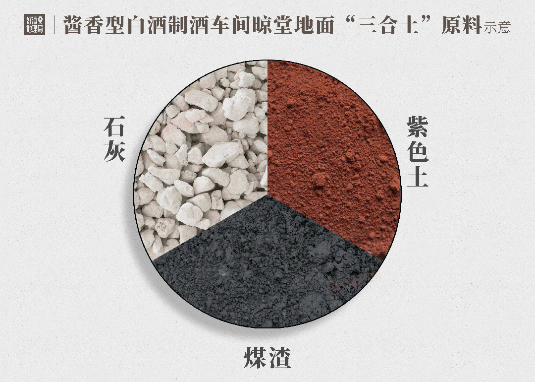 不过,茅台对紫红泥的运用绝不止窖泥,茅台的晾堂为“三合土”地面,这种地面便是采用石灰、紫红泥和煤渣筑成。