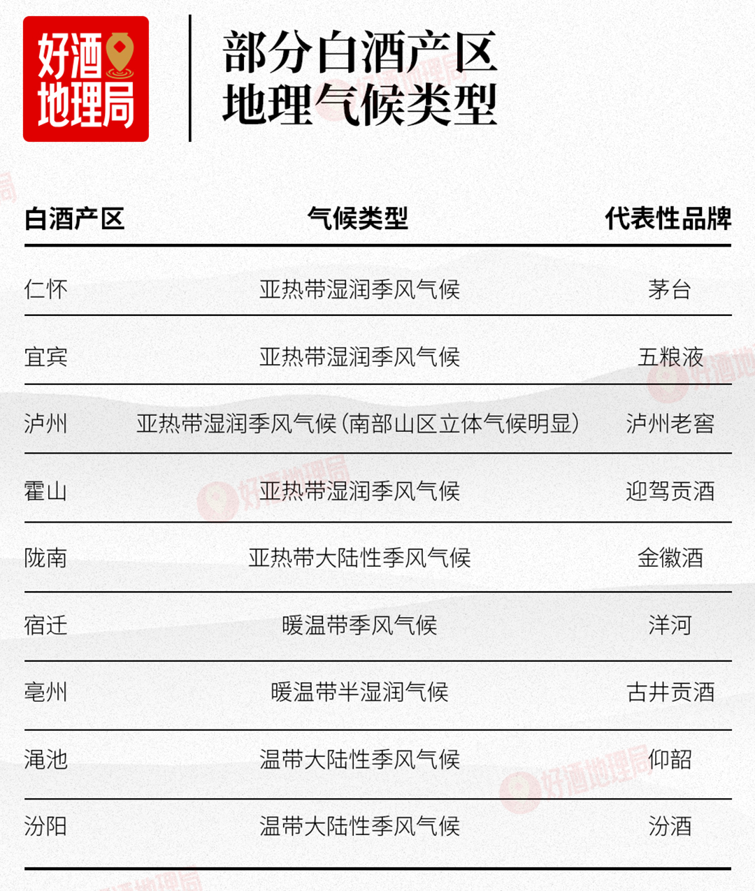 统而言之,一个地区的气候、地质、土壤、大气、植被、微生物等自然环境综合特征对优质白酒酿造至关重要。而气候作为具有地域特性的资源,是决定一个地区热量、雨量、温度、湿度、风速、光照的基本条件。