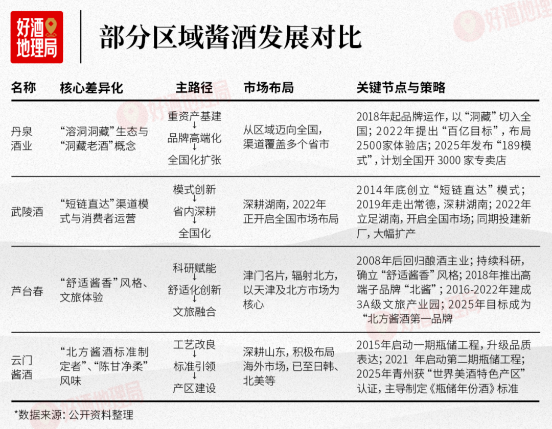 从南方的丹泉、武陵,到北方的芦台春、云门酱酒,区域酱酒企业的崛起,不仅填补了核心产区的市场空白,更形成了适配不同地域消费需求的酱酒产品体系。