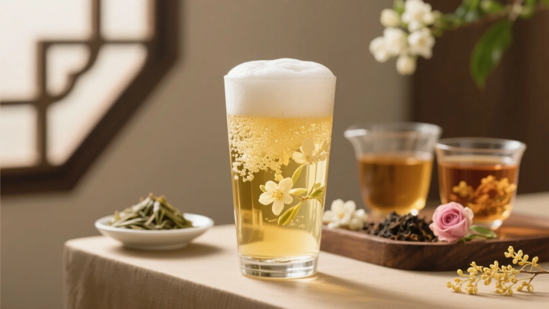 茉莉、龙井、乌龙、红茶……中式茶韵正带着其深厚的文化底蕴,注入啤酒的泡沫之中。玫瑰、桂花等经典花香,也伴随着“新中式”美学的风潮,在啤酒中找到了新的表达。