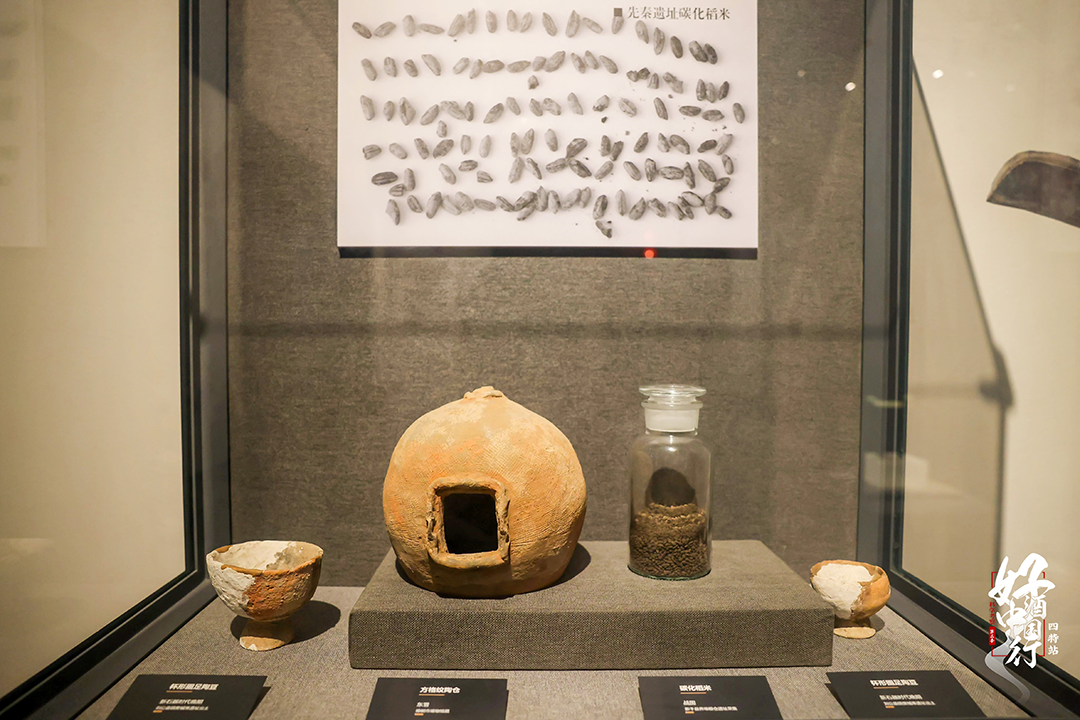 在樟树博物馆,颜色发黑的碳化稻米来自遥远的先秦时期。