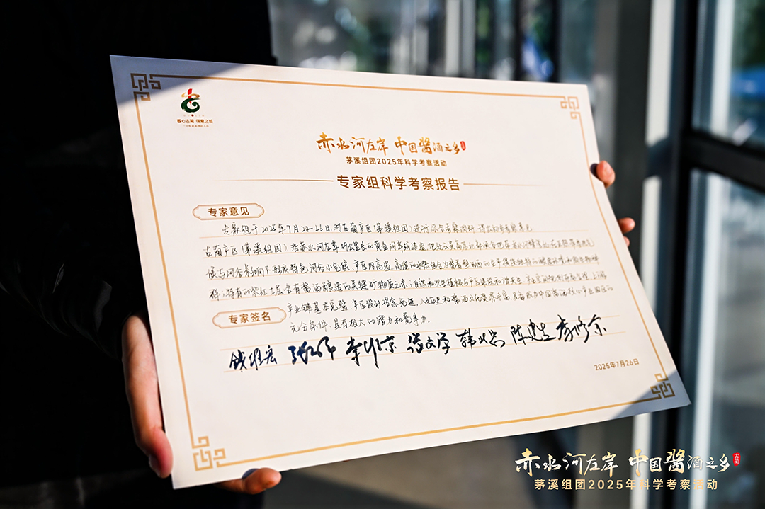此前,中国地理科学与资源研究所、江南大学、四川大学、西南交大、四川省食品发酵工业研究院等权威机构,对赤水河两岸的地形地貌、气温气候、水质水温、土壤类型、空气流动、空气湿度、微生物环境、生物多样性等方面开展长达三年的论证,并得出一致结论:茅溪酱酒产业园区完全具备支撑优质高端酱香型白酒生产的自然生态资源要素。