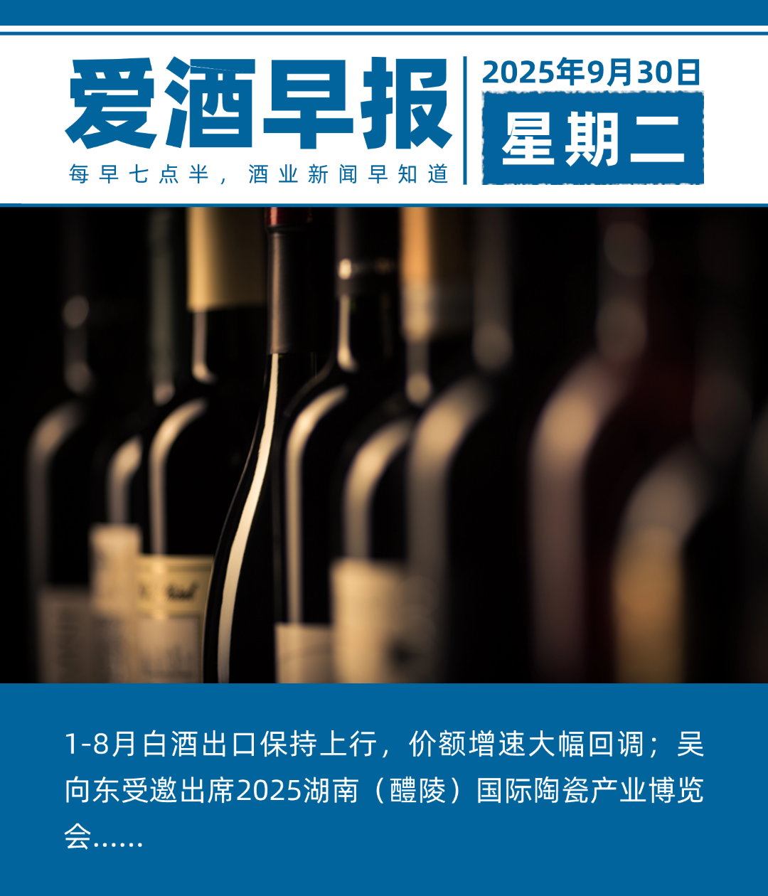 爱酒早报:1-8月白酒出口保持上行,价额增速大幅回调;吴向东受邀出席2025湖南(醴陵)国际陶瓷产业博览会