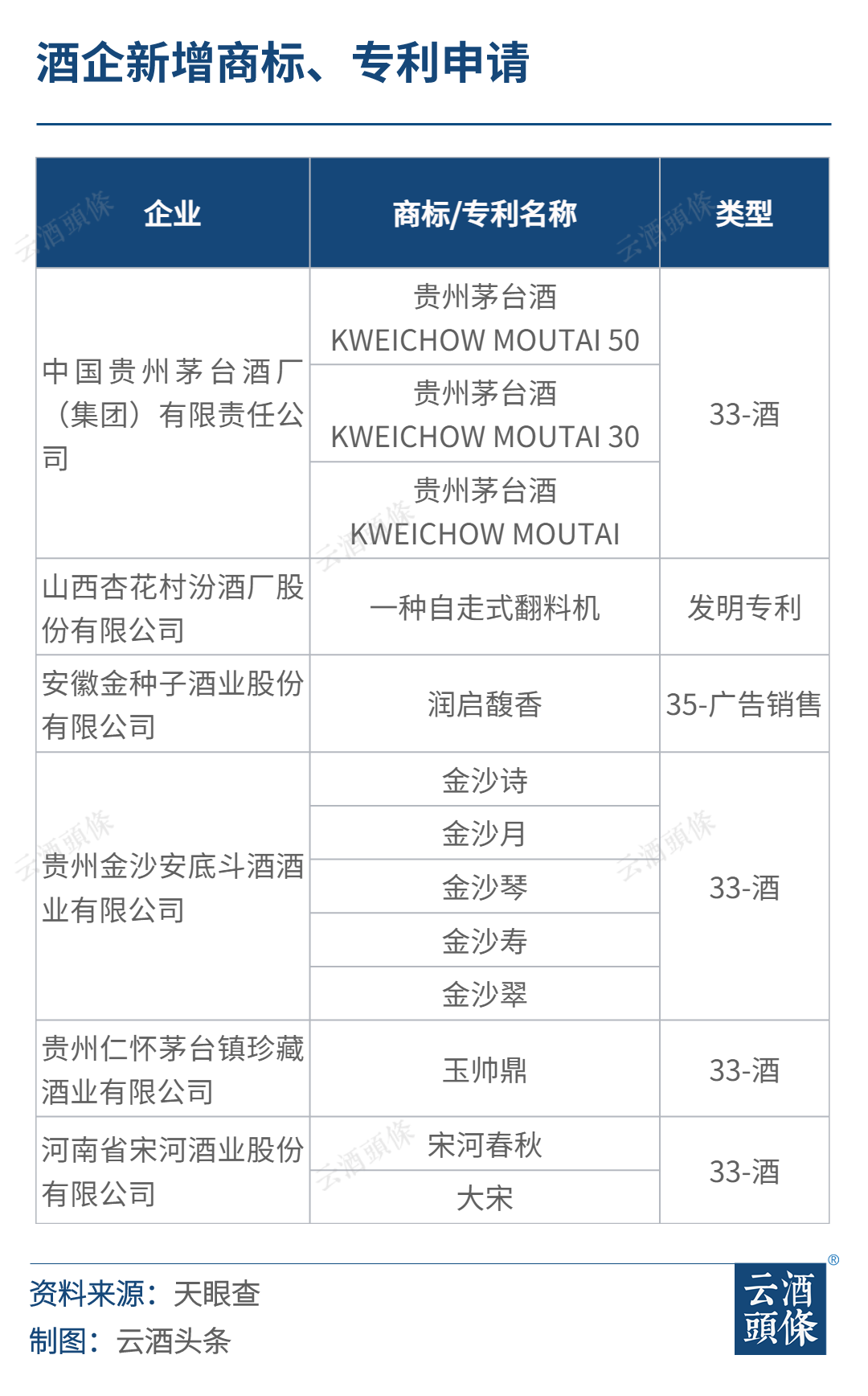 1月1日 星期一 酒饮茶等行业指数景气向好 古蔺经开区白酒产值235亿 茅台酱香系列酒营销顾问团名单更新 6家酒企申请商标、专利 金门高粱入选厦门老字号 2023美国新开啤酒厂450家 █ 酒饮茶等行业指数景气向好 国家统计局近日发布数据,2023年12月,受部分基础原材料行业生产淡季等因素影响,制造业PMI同比上月下降0.4%。受元旦、春节临近带动,农副食品加工、食品及酒饮料精制茶等消费品行业生产经营活动预期指数均升至60.0%以上的高位景气区间,企业对近期行业发展信心较强。(国家统计局) █ 古蔺经开区白酒产值235亿 近日,四川古蔺经开区发布消息,2023年,古蔺经开区入驻企业达288家,预计实现营收440亿元、产值300亿元、税收60亿元。集中攻坚酒业项目“四个清零”行动,永乐孙家坝、力酱庄园、仙潭龙井等8个酒业项目顺利投产,全年新增优质酱酒产能4万吨、总产能突破16万吨,规模以上白酒企业达27家,预计全年实现白酒产值235亿元、税收42亿元。当地还用2年的时间,实现了茅溪优质酱酒基地正式开酿。(古蔺经济开发区管理委员会) █ 茅台酱香系列酒营销顾问团名单更新 2023年12月30日,2024年贵州茅台酱香系列酒营销顾问团第一次会议在三亚召开。现场推选出了新一届的顾问团主席团成员:李秋水任顾问团团长,王庆云任名誉团长,刘家生任秘书长,王雷任副团长兼副秘书长,孔雪春、赵建华、刘文平任副团长。 会议提出,要凝聚共识和力量,统一思想和行动,同心同向、携手同行,坚定不移走好“五线”高质量发展道路,持续践行“五合营销法”,为实现“茅台酱香 万家共享”美好愿景共同奋斗,一起携手共创“美时代”。(茅台酱香芳华) ▎2024年度茅台酱香系列酒营销顾问团成员名单(图源同上) █ 6家酒企申请商标、专利 近日,天眼查显示,多家酒企申请商标、专利,具体如下图。(天眼查) █ 金门高粱入选厦门老字号 2023年12月29日,厦门市商务局正式公布2023年第一批厦门老字号认定名单,金门酒厂(厦门)贸易有限公司的“金门高粱酒”成为2023年第一批厦门老字号之一。(厦门市商务局) █ 2023美国新开啤酒厂450家 近日,美国酿酒商协会(Brewers Association)在总结2023年时提出,2023年美国新开了420家酿酒厂,关闭了385家。总体而言,精酿啤酒仍然很受欢迎。在美国销售的啤酒中,每8瓶就有1瓶以上是由独立酿酒厂酿造的,消费者每消费4美元,就有1美元花在了小型啤酒厂生产的啤酒上。(果酒观察)