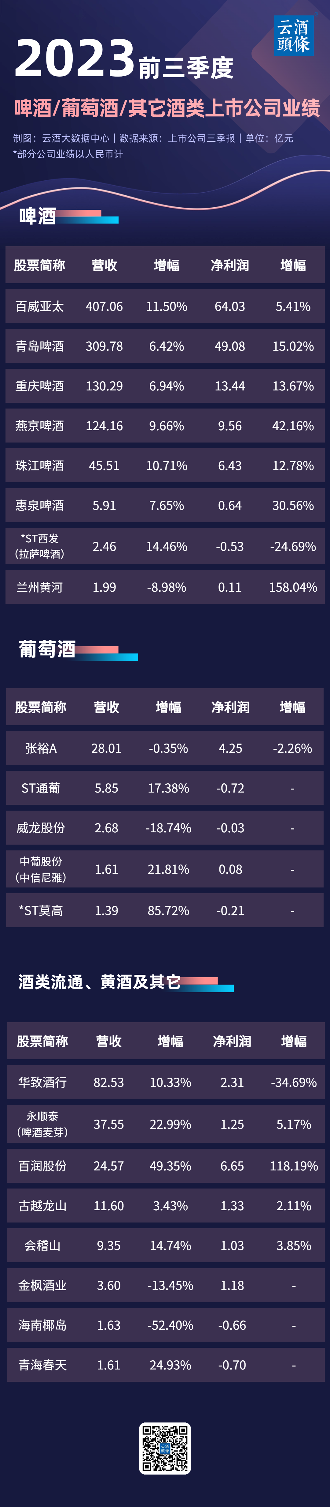 近日,61家酒类上市公司陆续发布2023年第三季度报告,完整数据如下图。